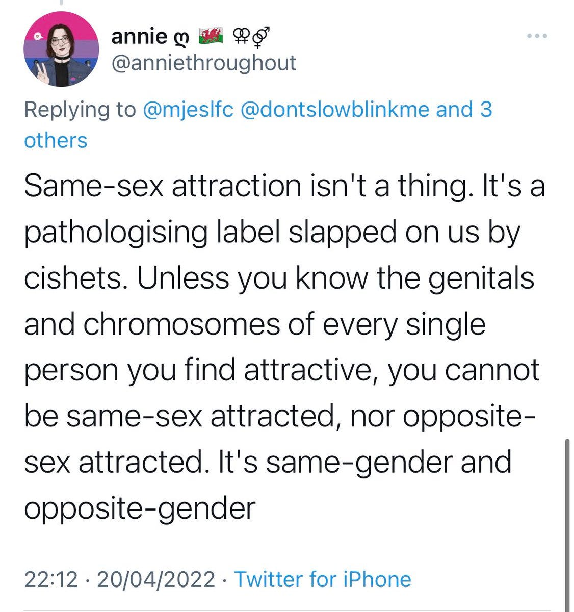 I'm not a "GC" or a "TERF". If you want me to respect the way you identify, don't assign labels to me that I reject. And I'm not the person saying that same-sex attraction, literally the definition of homoSEXuality, "isn't a thing."